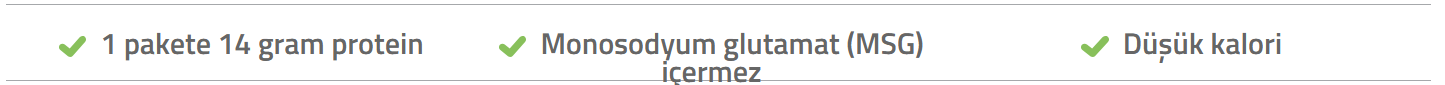 Bileşenler; Protein karışımı (Soya proteini izolatı, bezelye proteini, peynir altı suyu proteini), patates nişastası, maltodekstrin, yağ tozu (palm yağı), laktoz, süt proteini, topaklanmayı önleyici (silikon dioksit), süt tozu, tuz, soğan tozu, tavuk aroma vericisi, maya ekstraktı, çeşitli baharatlar.